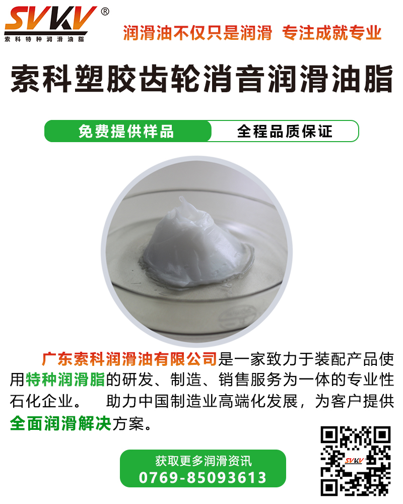 索科SVKV塑膠齒輪消音潤滑油脂正是這樣一款專為塑膠齒輪而研制的齒輪潤滑油脂,完美適配硒鼓齒輪。索科SVKV塑膠齒輪消音潤滑油脂選用高性能基礎油,并添加多種高效抗氧化、抗腐蝕等添加劑精制而成,是專為各種塑膠齒輪、傳動部位而研制的齒輪潤滑脂,能有效減少硒鼓齒輪磨損,降低噪音,并達到延長其使用壽命的效果。
