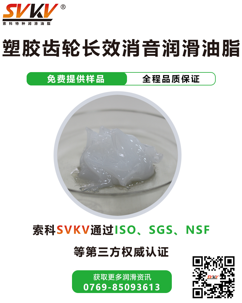 索科SVKV塑膠齒輪長(zhǎng)效消音潤(rùn)滑油脂選用高性能基礎(chǔ)油,并添加多種高效抗氧化、抗腐蝕等添加劑精制而成,是專為塑膠齒輪而研制。索科SVKV塑膠齒輪長(zhǎng)效消音潤(rùn)滑油脂能有效減少齒輪磨損,降低噪音,達(dá)到延長(zhǎng)齒輪壽命的效果。