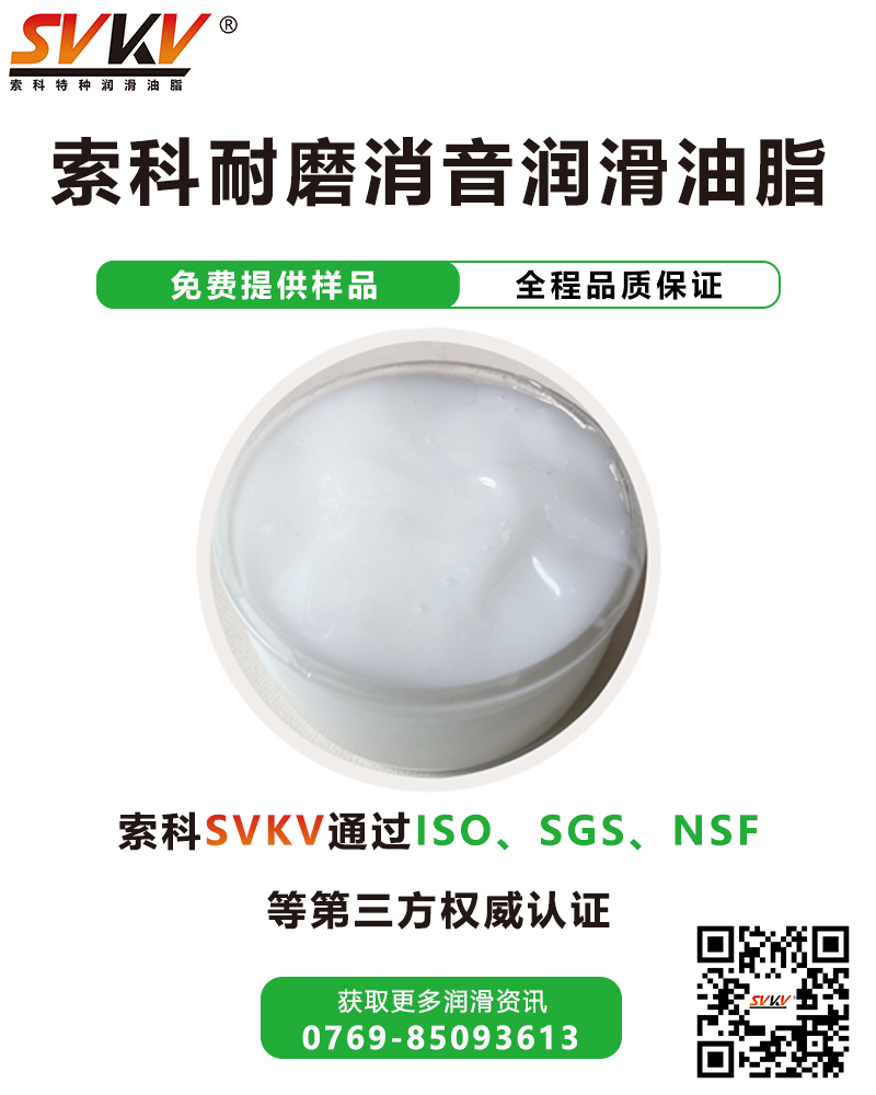 廣東索科潤滑油有限公司是一家致力于裝配產(chǎn)品使用特種潤滑脂的研發(fā)、生產(chǎn)、定制、服務(wù)為一體的專業(yè)性石化企業(yè)。致力為制造業(yè)客戶,提供專業(yè)的選油方案,協(xié)助客戶解決產(chǎn)品裝配時(shí)的潤滑難題,還可根據(jù)客戶特殊需求訂做適合的潤滑油品。有效提高產(chǎn)品性能、減低維護(hù)成本,索科助力制造業(yè)高端化發(fā)展! 主要產(chǎn)品有: 齒輪消音潤滑脂|高溫潤滑脂|食品級潤滑脂|齒輪消音潤滑脂|防水潤滑脂 導(dǎo)電油脂|軸承油|硅油|干性皮膜潤滑劑|低溫潤滑脂|阻尼脂|全氟油脂