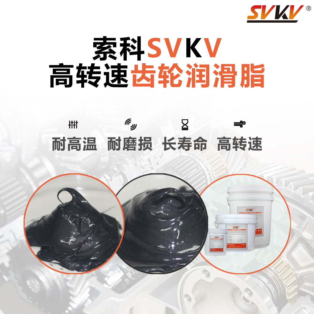 高轉速齒輪潤滑脂一般要求基礎油粘度適中或較小,油膜粘度較低,極壓性較低,主要是降低齒輪在高速下的運轉扭矩。索科專門為高速高速齒輪研發了一款潤滑脂,索科SVKV941系列高轉速齒輪潤滑脂,能夠滿足齒輪潤滑需求,降低齒輪噪音延長壽命。